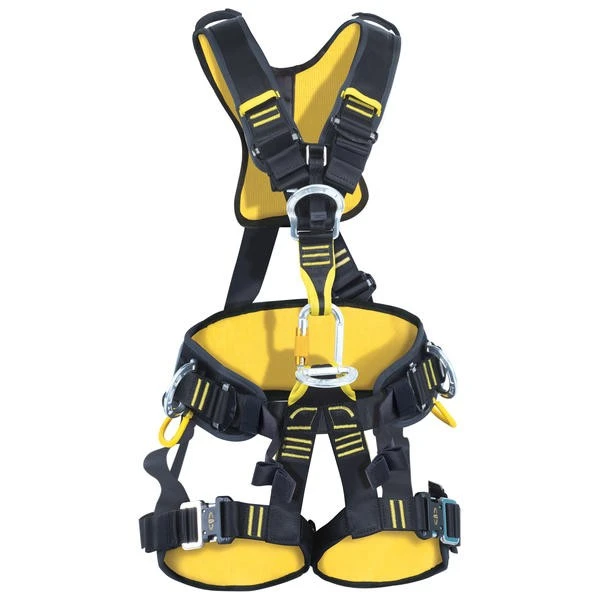 Sivukiinnityspisteet jakavat lantiovyön painoa ja parantavat mukavuutta työskenneltäessä jalat tuettuina. Putoamisen pysäyttävän järjestelmän kiinnityspiste rinnassa ja selässä. Automaattisesti lukkiutuvat soljet olkahihnoissa ja lantiovyöllä. Jalkalenkeissä pikasoljet ja edessä automaattilukitteinen sulkurengas, jolla yläosa liitetään alaosaan. Olkahihnoissa kaksi varustelenkkiä esim. radiolle. Lantiovyöllä neljä suurikokoista varustelenkkiä, kuusi pientä kulutussuojattua ja helppokäyttöisiksi jäykistettyä työkalukiinnitintä.