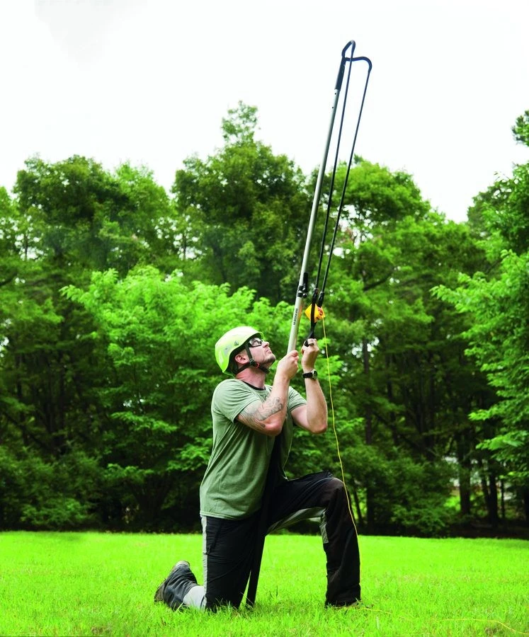 Big Shot katapultin avulla saadaan heittopaino lingottua korkeisiin ja hankaliin paikkohin jopa 40 metrin korkeuteen. Mukana toimitetaan kaksiosainen varsi.
